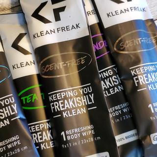 Thankfully a company called Klean Freak launched on October 1st and they make a variety of pre-moistened body wipes that are individually wrapped, which makes them easy to carry with you when you’re on-the-go. I had the opportunity to try them out before their launch and I’m excited to share my experience with you.