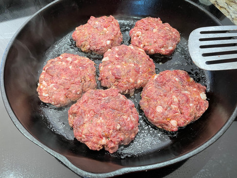 Melt 1 tbsp of butter in a large skillet over medium heat. While butter is melting, divide the meat into 6 equal patties. Brown the patties in the skillet over medium, about 3 minutes per side.
